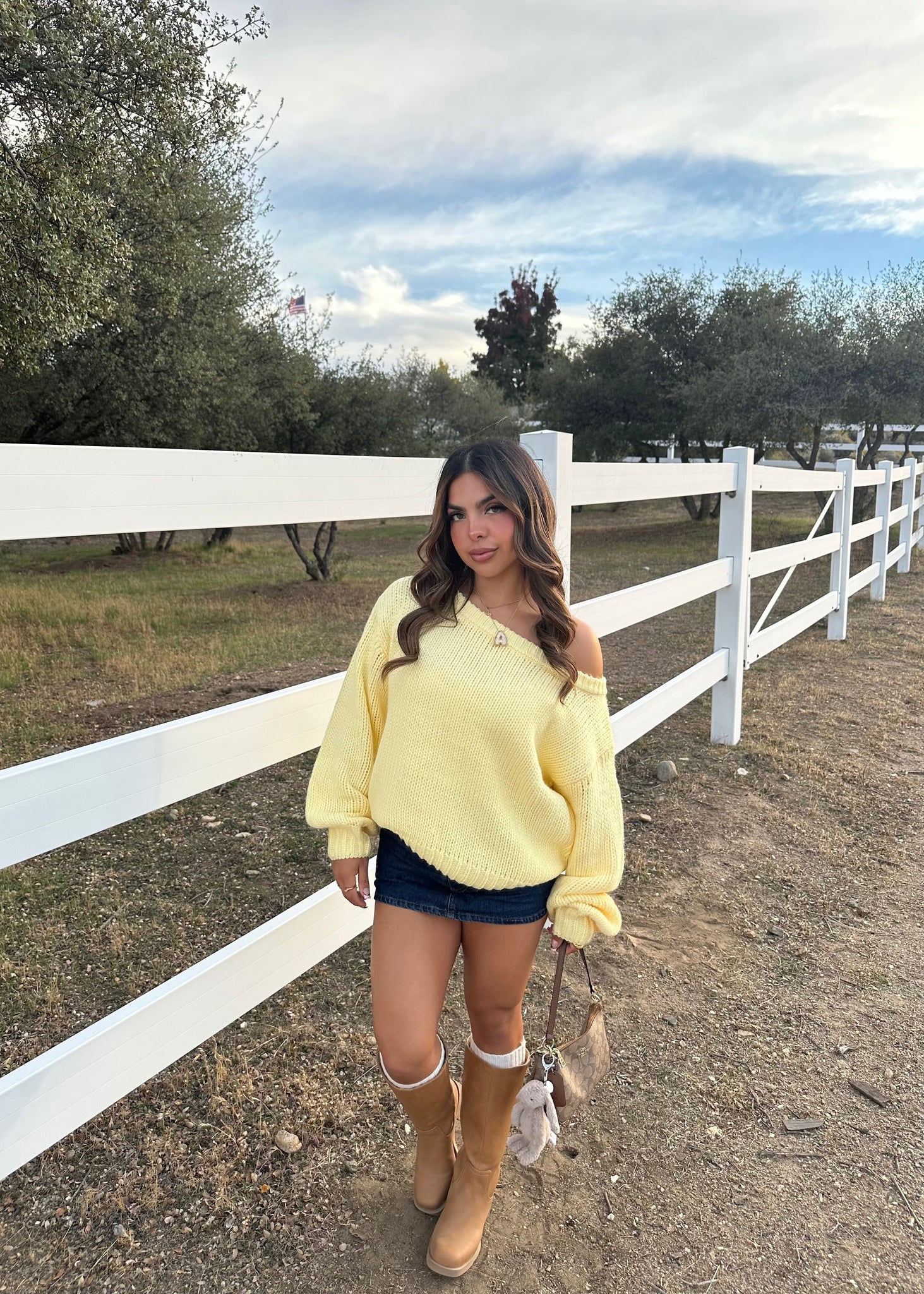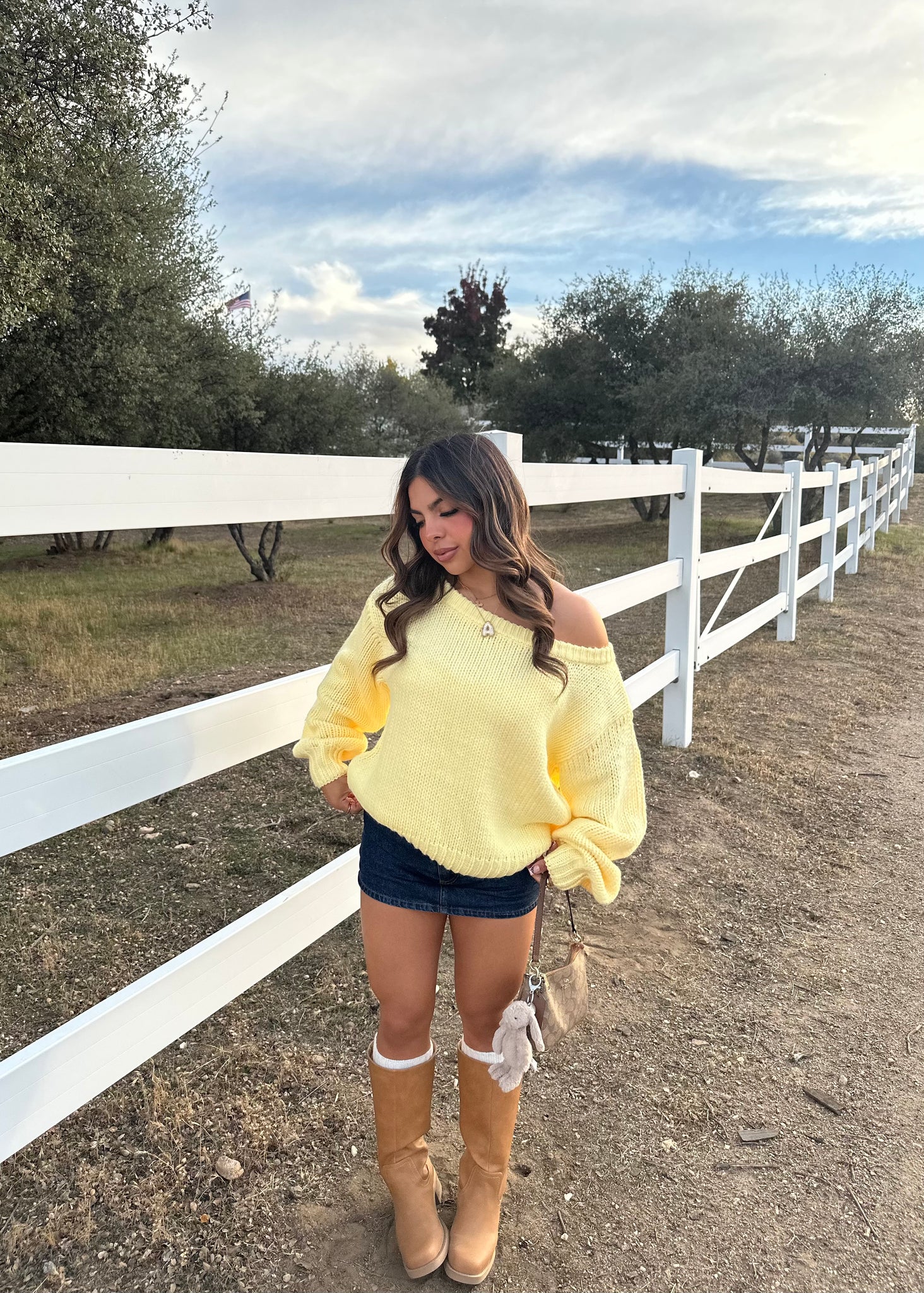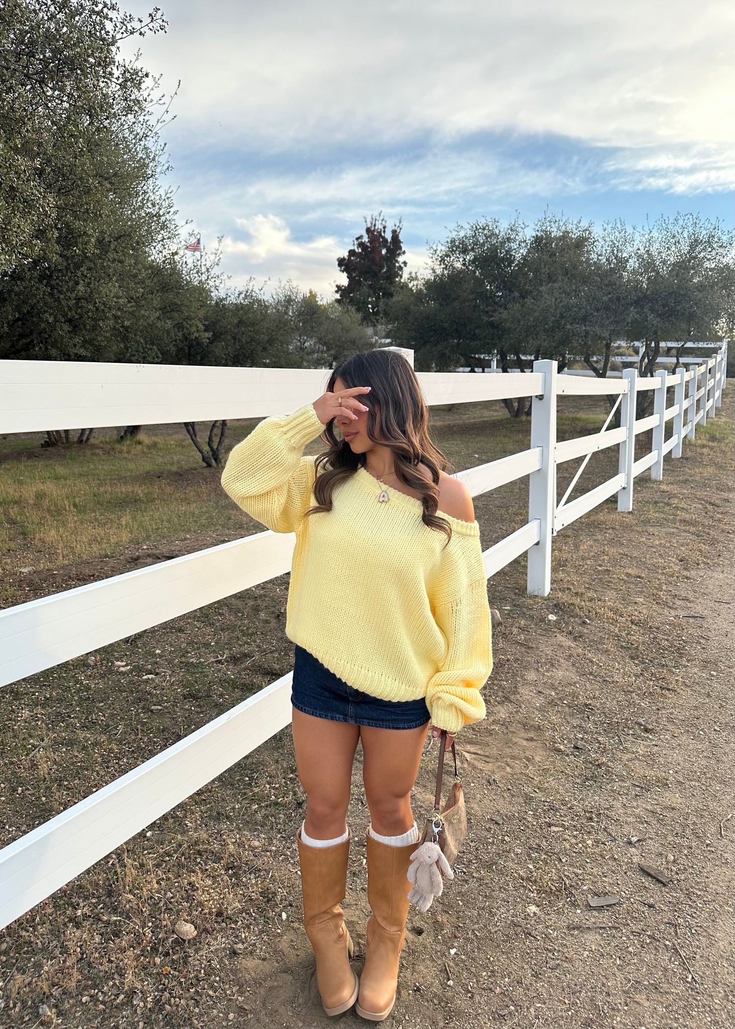 Our Marlo Knit is a slightly oversized off the shoulder knit sweater